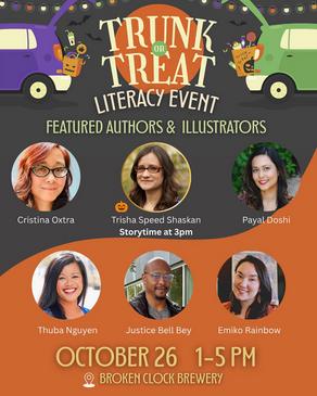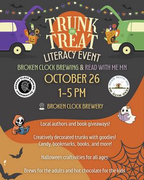 Oct. 28 - Halloween Literacy Trunk-or-Treat- 1 p.m. - 5 p.m.- Broken Clock Brewery, Minneapolis - The event will feature decorated trunks by Broken Clock, local author decorated trunks, arts and crafts activities for families, treats, prize giveaways, and a silent auction for Read With Me MN.