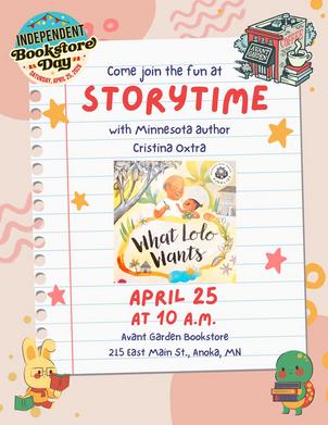 April 25 at 10 a.m. at Avant Garden Bookstore, Anoka
