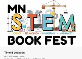 Oct. 12 - MN STEM Book Fest - 10 a.m. - 4 p.m. - The Bakken Museum, Minneapolis - Listen to STEM-related panels, meet authors, participate in activities, and more! Free entrance to the museum.